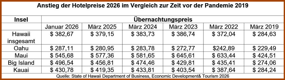 Das hat man inzwischen auch in Hawaii erkannt, wie eine Zusammenstellung des hawaiianischen Tourismusbüros vom Februar 2025 zeigt: