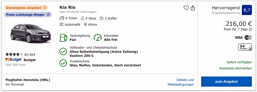 Den günstigen Preis bei annehmbar kurzen Flugzeiten von Frankfurt nach Honolulu schafft keine andere Fluggesellschaft.